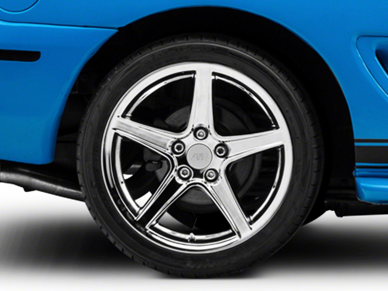 Application. This American Muscle Wheels Saleen Style Chrome Wheel; Rear Only; 18x10 with a backspace of 6.603 Inch, 167.8mm and bolt pattern of 5 x 114.3mm (5 x 4.5-Inch) ensures impeccable alignment and unmatched driving stability. Specifically designed for 1994-1998 Mustang models, each wheel is sold individually.