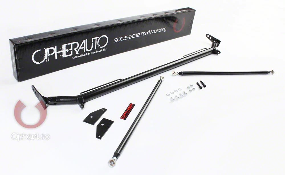 Design. In addition to its practical advantages, this Cipher Auto Custom Seat Harness Bar gives your Mustang's interior a stylish touch. The interior of the vehicle is complemented by the sleek black finish, which adds to its sporting appeal.