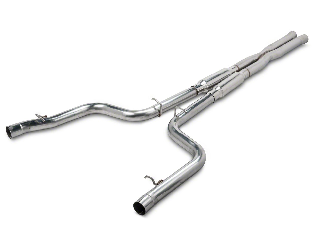 Quality Construction. C&L proudly manufactures their Cat-Back Exhaust systems from mandrel-bent, 2.5-inch diameter, premium grade, 409 stainless steel tubing for excellent exhaust flow and enduring corrosion resistance. Besides the high-flow, X-pipe, this system features a pair of 304 stainless steel, high-flow, straight-through bullet style mufflers.