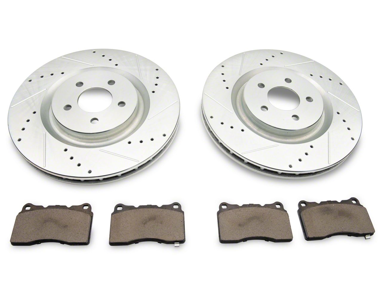 Impressive All-Around Braking Performance. Give your Mustang the braking performance it needs to handle both high performance and daily driving situations with the C&L Super Sport Cross-Drilled and Slotted Brake Rotor and Pad Kit for the Front. This front brake rotor and pad kit is designed to improve stopping power for more aggressive driving applications. Moreover, this rotor and pad kit still retains an everyday braking feel so you could still use your ride as a daily driver.