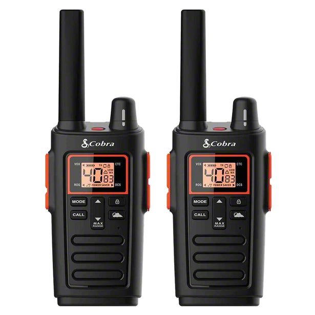 Cobra Weather-Resistant Walkie Talkies; Black and Orange; 2-Pack