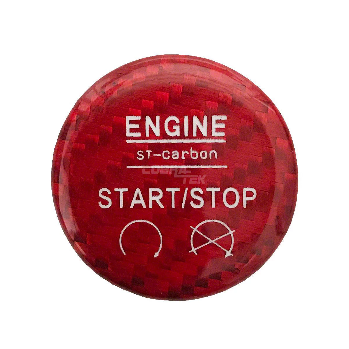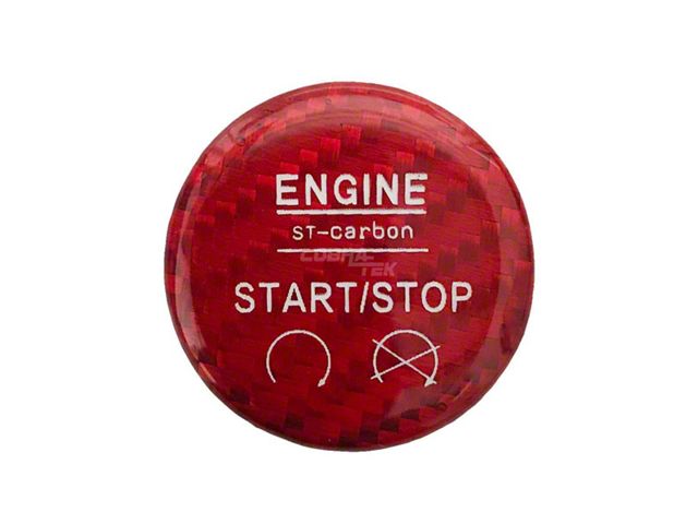 Carbon Fiber Construction. Ignite your Mustang's engine with style using the Cobra-Tek Engine Start Up Button, a sleek addition to your vehicle's interior. This button is crafted from top-grade carbon fiber material and finished in a striking gloss red, adding a touch of sophistication and sportiness.