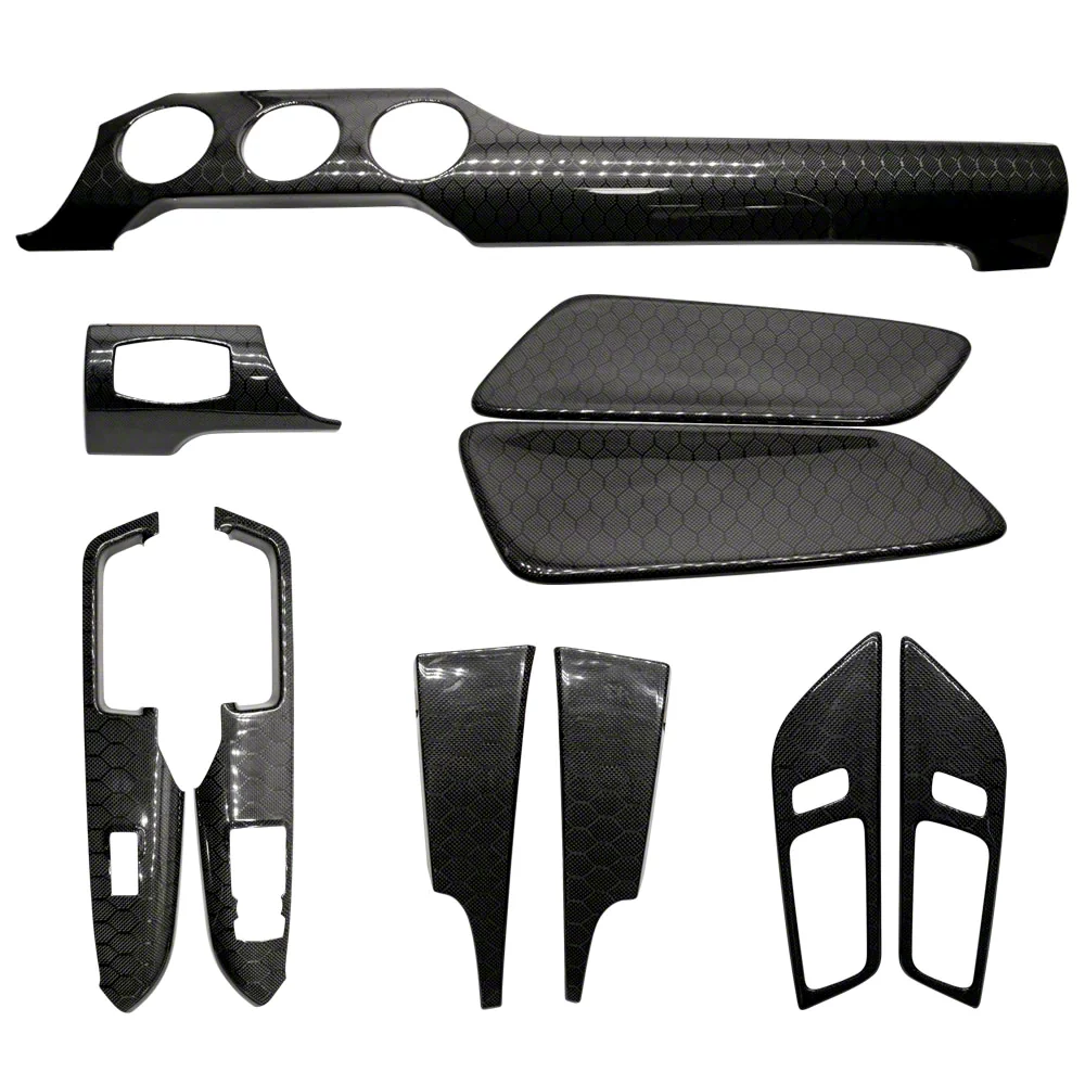 Long Lasting Quality. Crafted with honeycomb carbon fiber, the Cobra-Tek Non-Performance Pack Dashboard Trim offers a unique and stylish appearance to your dashboard. The glossy finish adds a sleek and sophisticated touch, enhancing the overall aesthetic of your vehicle's interior. Designed with a UV-resistant design, this trim is protected against the damaging effects of sunlight, ensuring it maintains its appearance and durability over time.