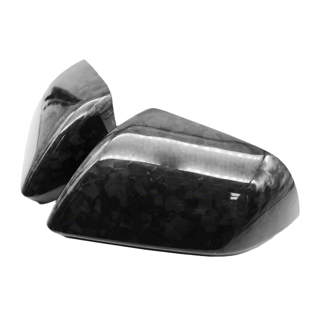Functionality and Elegance. The Cobra-Tek Side View Mirror Covers without Turn Signal Openings in Forged Carbon Fiber is a pair of sleek and durable mirror covers that is meticulously laser-cut to match factory specifications, ensuring a perfect fit for your vehicle. Designed for both style and protection, these mirror covers elevate the appearance of your car while safeguarding the side view mirrors against potential damage.