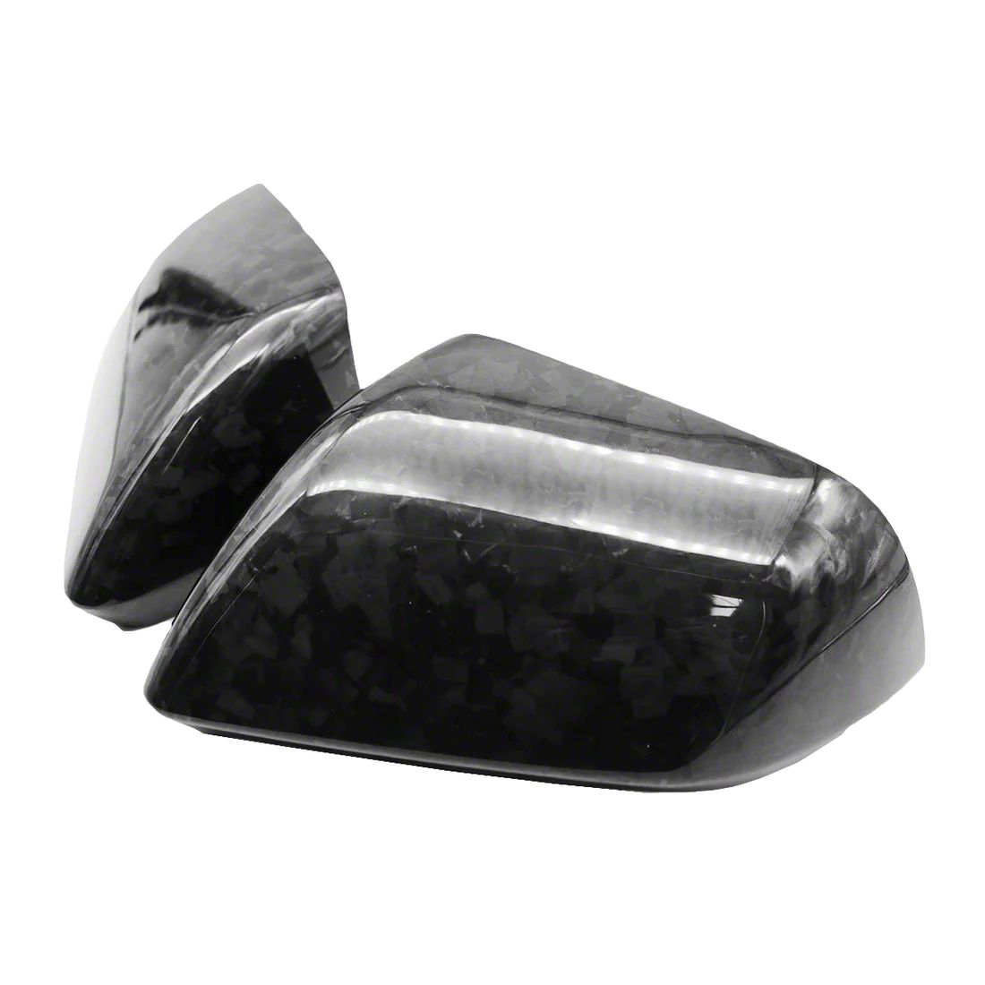 Design. The Cobra-Tek Side View Mirror Covers are crafted from forged carbon fiber, which gives your Mustang's side view mirrors a stylish and athletic feel. The appearance of your vehicle can be improved with the sleek design, creating a more aggressive and dynamic look. These mirror covers add to the Mustang's smooth design, resulting in a unified and aesthetically pleasing appearance on the outside.