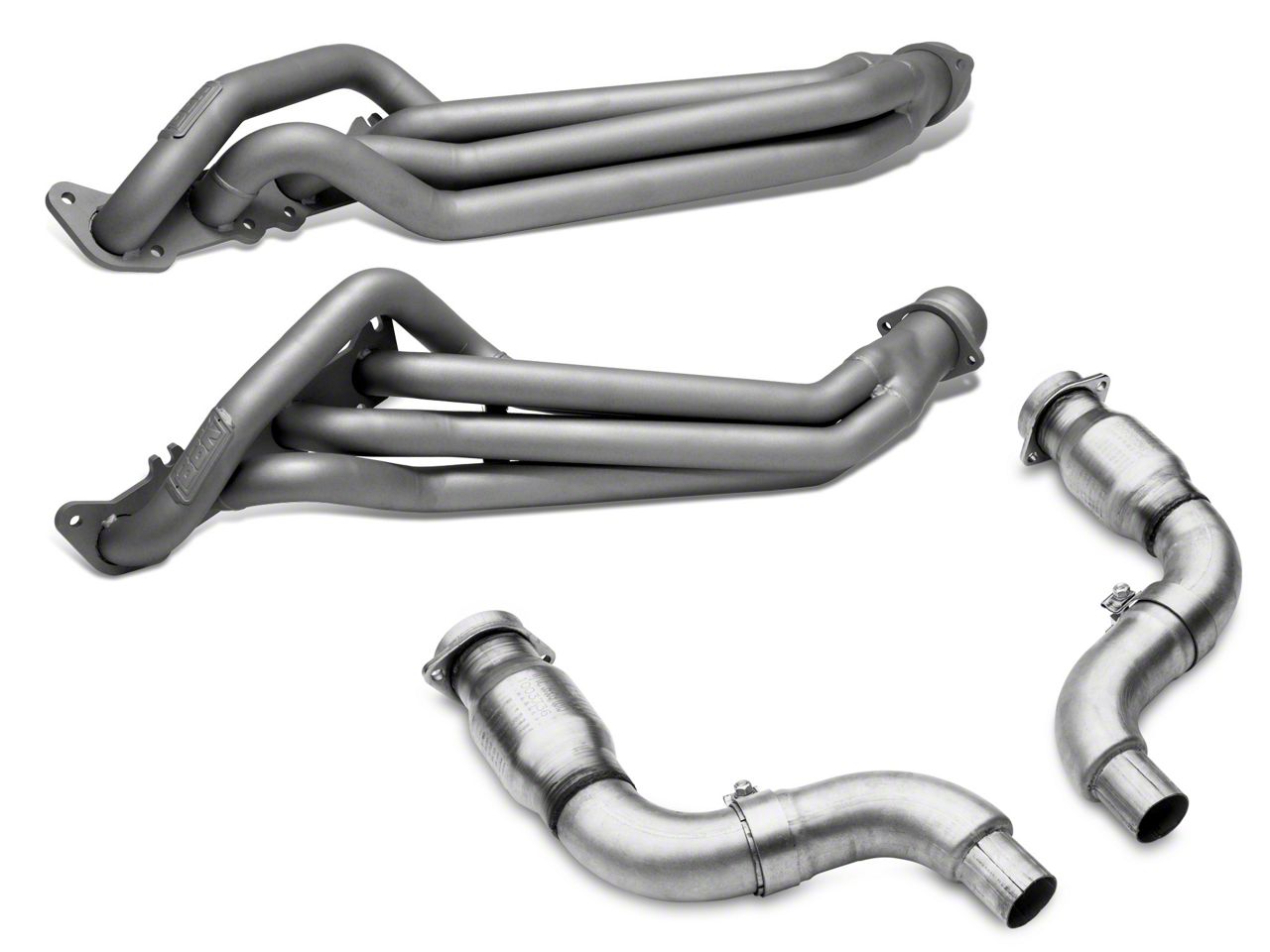 More Horsepower and Torque. Improve your Coyote powered Mustang's performance by installing a BBK 1-7/8 Inch Ceramic Long Tube Headers and Catted Mid-Pipe Adapter Combo Kit. These BBK Long Tube Headers will greatly improve your Mustang's exhaust flow over the restrictive factory manifolds and increase your Pony's rear wheel horsepower and torque. Significant increases of up to 30 rear wheel horsepower have been seen when installed with the included Midpipe Adapters. BBK's 1-7/8 Inch Headers are recommended for use on Nitrous, Supercharged or Turbocharged applications.