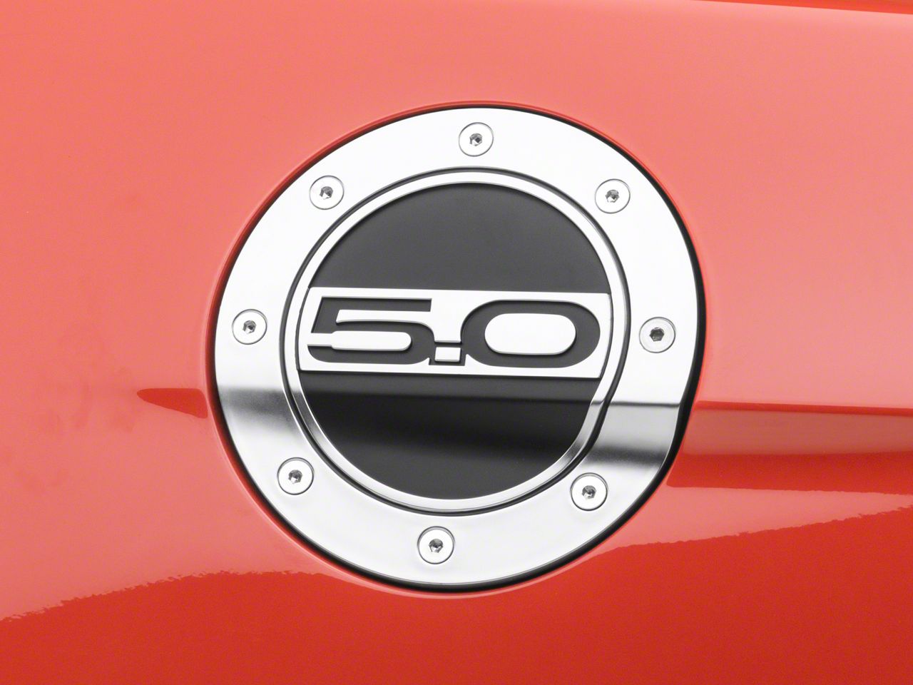 This fuel door utilizes quality stainless steel mounting hardware to ensure resistance against corrosion and rust, while the fuel door is constructed of high-grade ABS with a high-polish silver and matte black finish. The 5.0L emblem is laser-cut for a perfect design. It features exposed lugs for an industrial design.