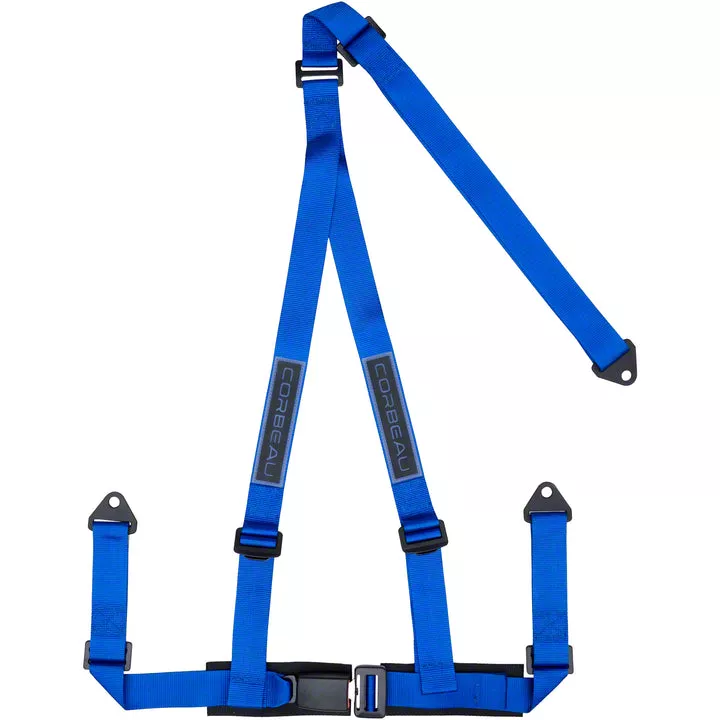 Durable Construction. In order to maintain its height-end look and unbeatable function, Corbeau's Blue 2 in. 3-Point Bolt-In Harness Belt is created from 2 in. wide blue military grade nylon webbing. With incredible durability and consistent reliability under difficult conditions, this harness will be with you for a long time to come.