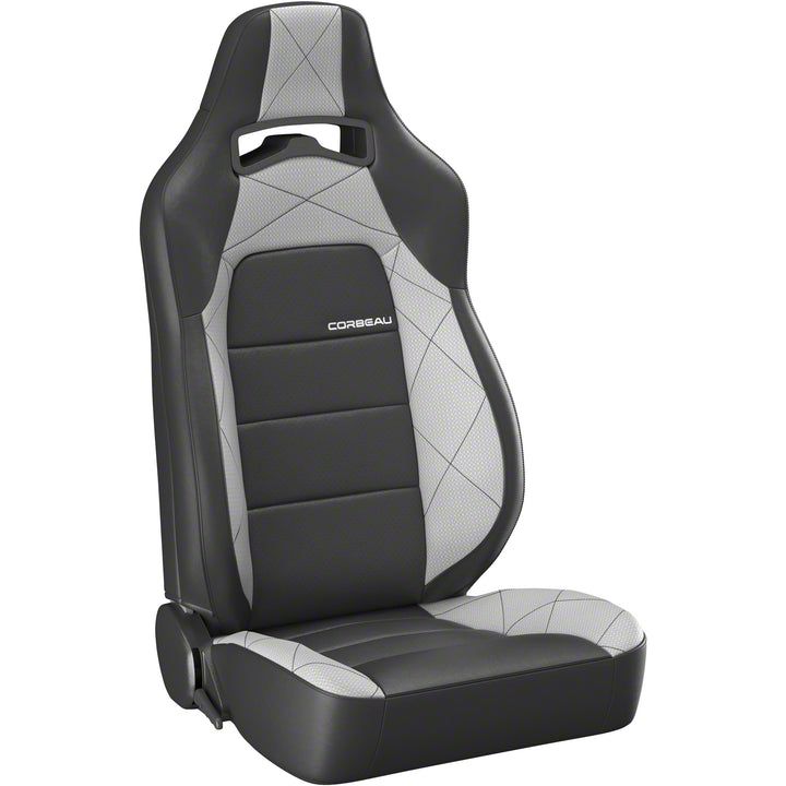Stylish and Comfortable. This Pair of Corbeau Trailcat Reclining Seats in a Black Vinyl/Gray HD Vinyl colorway for your Challenger give the utmost comfort while also providing style points with their eye-catching colorway. These reclining seats keep you comfortably seated without shifting as you go about your daily driving.