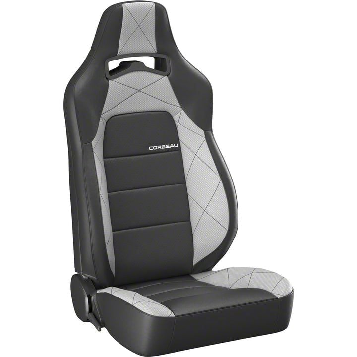 Unmatched Comfort, Style, and Function. These Corbeau Trailcat Reclining Seats; Black Vinyl/Gray HD Vinyl; Pair deliver unmatched comfort and function. Designed for 30 to 40-inch waists, these reclining seats offer unrelenting comfort and security like no other with their high side kidney bolsters that prevent your body from shifting while driving. By installing these high-performance seats, you can drive with exceptional comfort and focus more on outpacing other vehicles.
