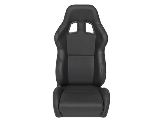 Construction and Appearance. These racing seats feature a black Leather design and are constructed with a base height of 3.50 inches. Weighing 26 pounds each, they offer durability and a sleek appearance, complementing the interior of any vehicle.