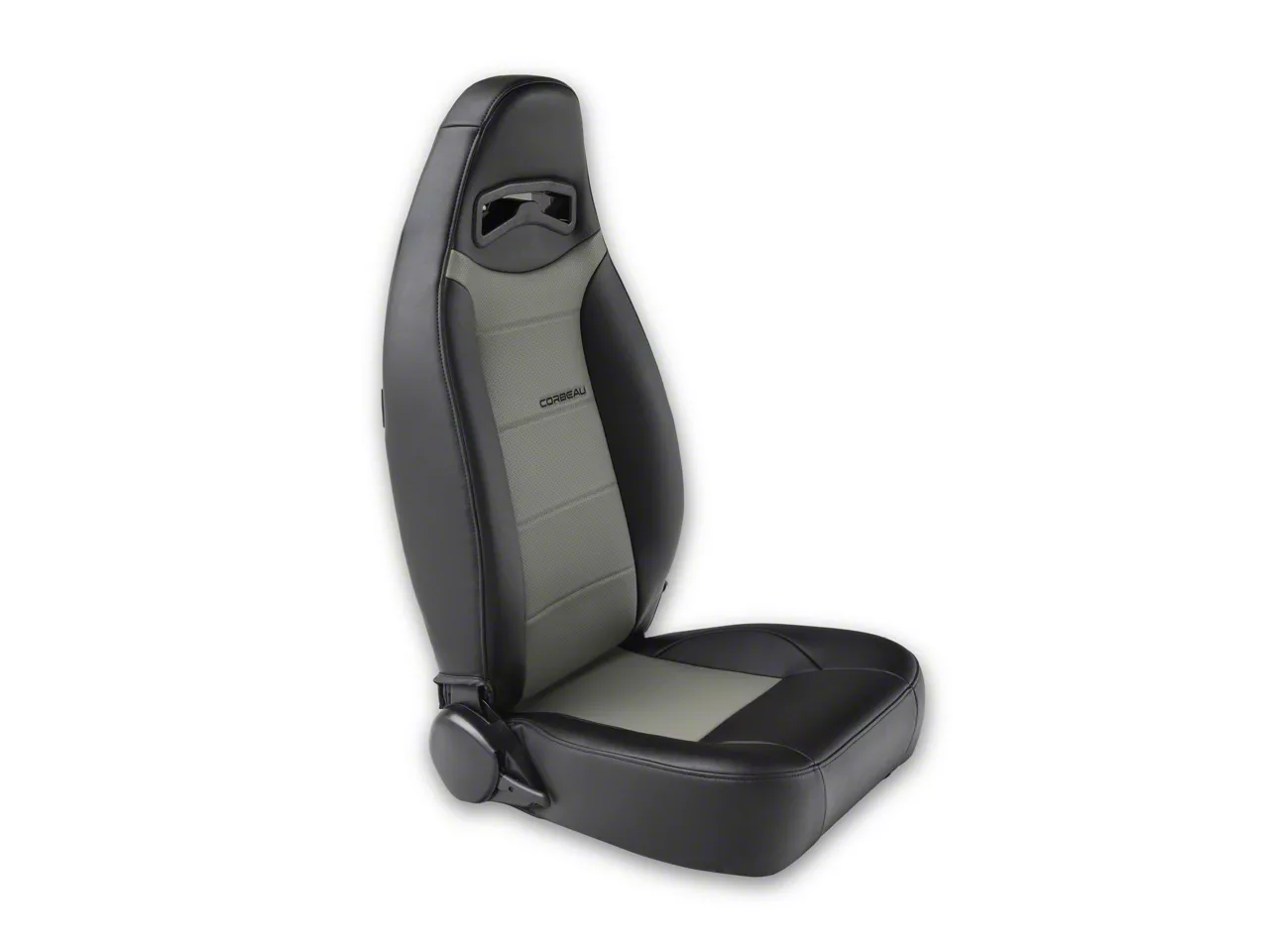 Bring the Performance. Your 1979-2026 Ford Mustang provides you with awesome performance on the road and on the track, but when you're really pushing it, your stock seat might not be enough to hold you in place. So when you want to up your game, check out the Corbeau Moab Reclining Seat - Black Vinyl/Grey Perforated Vinyl - Pair. This classic look and powerful off-road configuration are going to keep you and a passenger in place and in style, thanks to Corbeau's high-quality design.