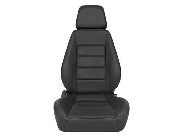 High-Quality Stitching. The Corbeau Sport Reclining Seats are upholstered in high-quality black leather, providing a luxurious and stylish appearance. The premium leather material not only enhances the aesthetic appeal of your vehicle's interior but also offers exceptional durability and comfort. The black leather finish is designed to resist wear and tear, ensuring that your seats maintain their pristine look.