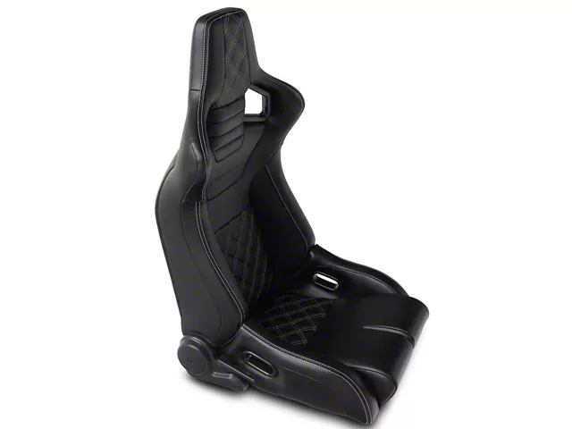 Application. This Pair of Black Vinyl/Carbon Vinyl Black Diamond Stitch Sportline RRB Reclining Seats by Corbeau is compatible with all 1979-2025 Ford Mustang models.