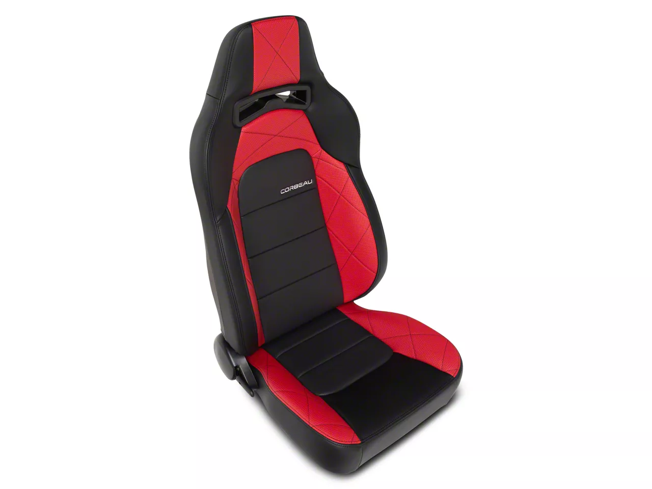 Application. The Corbeau Trailcat Black Vinyl/Red HD Vinyl Diamond Pattern Paired Seats fit all 1979-2026 Ford Mustang models.