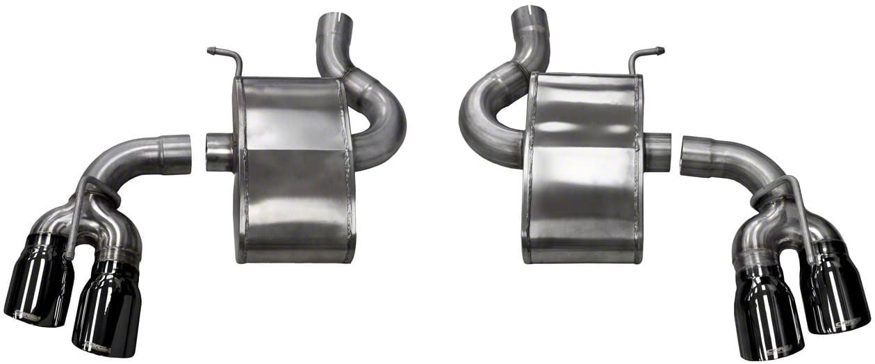 Quality Construction. Corsa Performance proudly manufactures their Axle-Back Exhaust systems right here in the good ole USA. This Corsa Axle-Back is mandrel-bent from 2.75-inch diameter, premium grade, 304 stainless steel tubing for excellent exhaust flow and enduring corrosion resistance. This system features a pair of high flow, straight-through sport mufflers and twin 4.0-inch, black chrome, 304 stainless steel exhaust tips with laser etched Corsa logo for impressive styling.