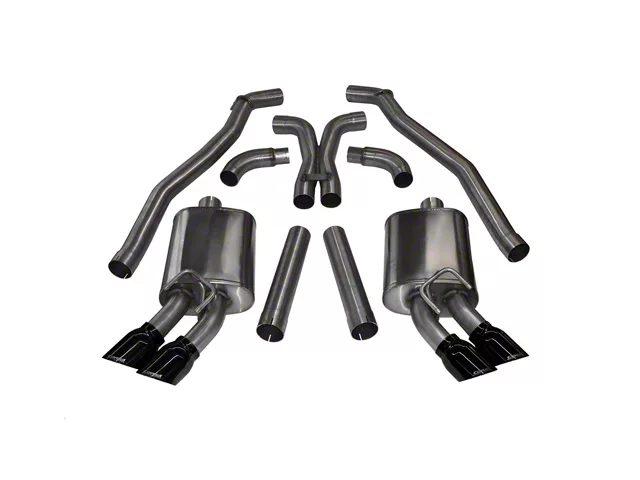 Quality Construction. Corsa Performance proudly manufactures their Cat-Back Exhaust systems right here in the good ole USA. This Corsa Cat-Back is mandrel-bent from 3.0-inch diameter, premium grade, 304 stainless steel tubing for excellent exhaust flow and enduring corrosion resistance. This system features a pair of high flow, straight-through sport mufflers and twin 4.0-inch, black chrome, 304 stainless steel exhaust tips with laser etched Corsa logo for impressive styling.