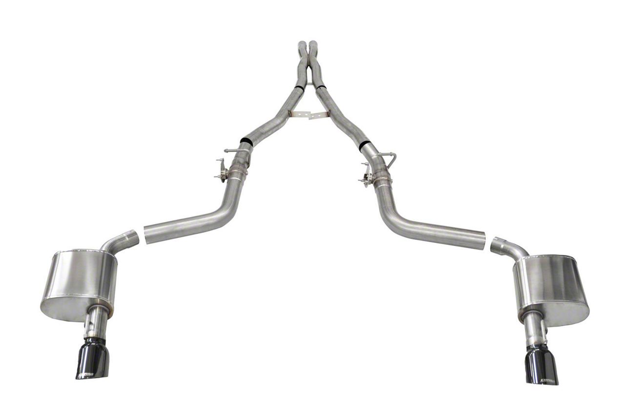 Delivers an Aggressive and Loud Exhaust Sound. This Corsa Xtreme Valved Cat-Back Exhaust with Black Tips will let your car generate a more attention-grabbing sound. This exhaust system sports a valved construction and comes with straight-through mufflers that allow your vehicle to produce an aggressive and loud exhaust system sound.