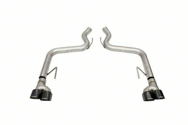 Application. The Corsa Performance Track Series Axle-Back Exhaust with Black Tips fits all 2018-2023 Ford Mustang GT Fastback models without Active Exhaust.