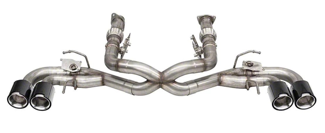 Application. This Corsa Performance Muffler Delete Cat-Back Exhaust with Polished Carbon Fiber Tips fits all 2020-2026 6.2L Chevrolet Corvette C8 with NPP Dual Exhaust Mode.