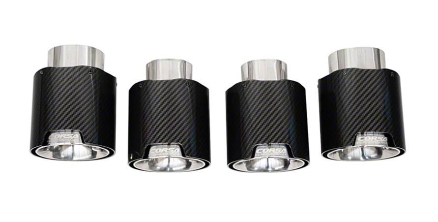 Application. The Corsa Performance Quad Straight Cut Exhaust Tips; 4.50-Inch; Polished Carbon Fiber Tips fits 2020-2026 6.2L Corvette C8 with Corsa Exhaust.