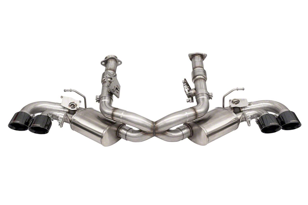 Installation. Putting this Corsa Performance Variable Cat-Back Exhaust with Black Tips and AFM Simulators on your 6.2L Corvette C8 is easy and requires no drilling.
