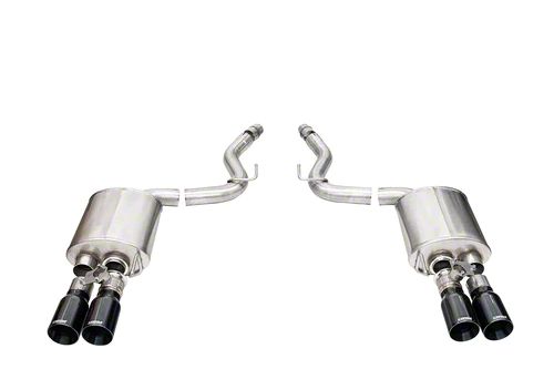 Quality and Reliability. Constructed from high-quality stainless steel, the Corsa Performance Sport Valved Cat-Back Exhaust is built for durability and longevity. The Straight Cut Black Tips add a stylish finish, while the easy bolt-on installation ensures a secure fit. This exhaust system promises reliable performance and improved fuel efficiency.