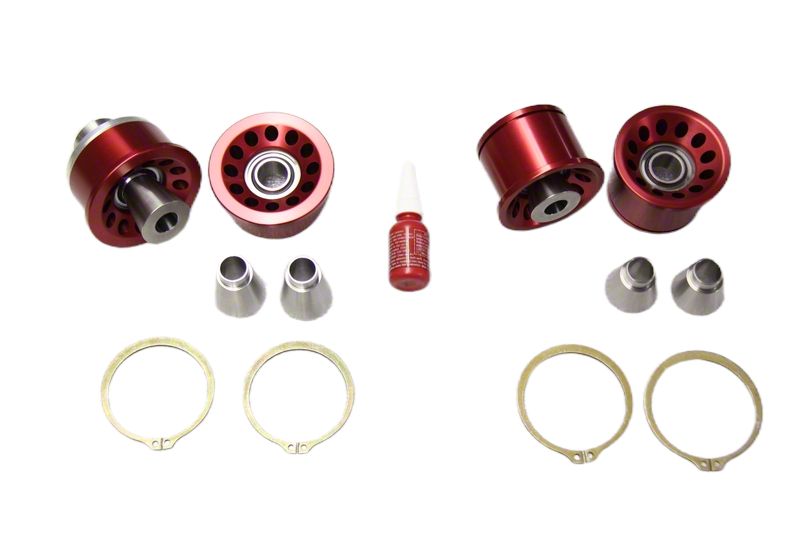 Construction and Appearance. Featuring a durable metallic red finish, this kit includes high-quality monoball bearings and stainless-steel spacers. Engineered to withstand high loads and aggressive driving, these components ensure long-lasting performance while adding a bold touch to your suspension system.
