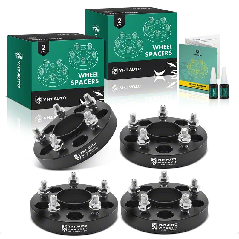 PREMIUM WHEEL SPACERS. The 1-Inch 5-Lug Wheel Spacers in black, sold as a set of four, provide a precise way to widen your vehicle's stance. These spacers help increase clearance for brakes and suspension components, improve handling dynamics, and enhance the vehicle's overall appearance. They are an essential upgrade for performance and fitment adjustments.