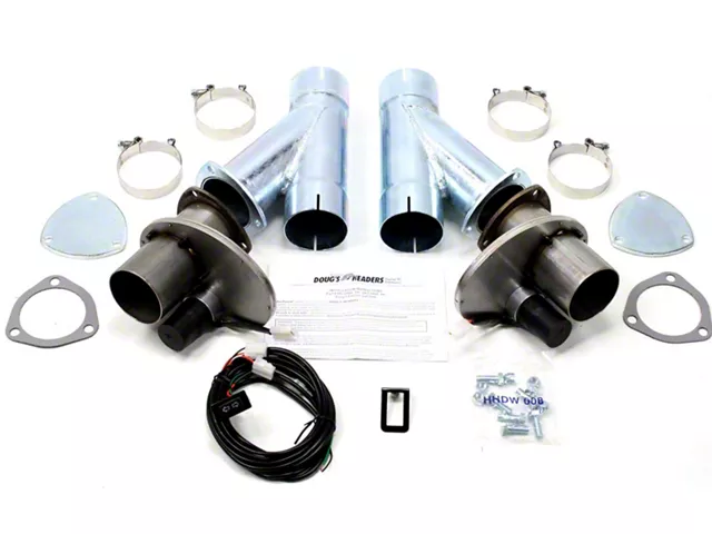 Instant Exhaust Freedom. Take control of your vehicle's exhaust sound and performance with the 3-Inch Electric Cut-Out with Hook-Up Kit; Pair. This exceptional exhaust modification kit is engineered to give you the power to switch between a mellow street cruiser and a roaring racecar with the push of a button. With the pair of 3-inch electric cut-outs, you to bypass your mufflers when you crave that thunderous, open-pipe sound. Whether you're at the track or on the streets, unleash the beast within your vehicle and turn heads wherever you go.