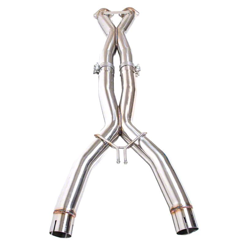 Durable Structure. Crafted with high-quality T304 stainless steel, the 3-Inch Performance X-Pipe Kit offers exceptional strength and resistance to corrosion. The brushed silver finish adds a sleek and polished look to your vehicle's exhaust system, enhancing its overall aesthetics. With its 3-inch diameter, this kit ensures optimal exhaust flow and maximum power gains.