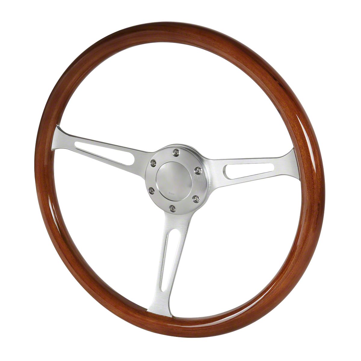 380mm Wood Grain Style 3-Spoke Steering Wheel; Wood/Plastic Composite (Universal; Some Adaptation May Be Required)