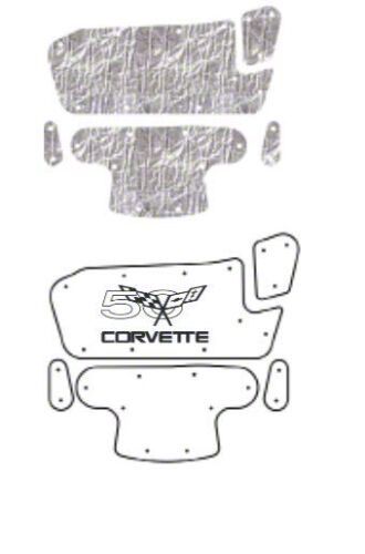Engine Bay Sound Control. The AcoustiHood Insulation Kit is a sound-dampening solution crafted specifically for 1997-2004 Chevrolet Corvette C5 models. Designed to lower engine bay noise by an average of 3 to 5 decibels, this kit enhances cabin comfort while adding visual appeal with a commemorative Corvette 50th Anniversary logo. It's ideal for owners looking to preserve performance without sacrificing quietness.