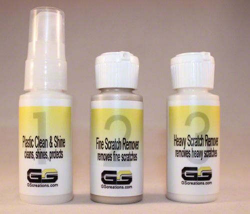 Construction and Appearance. Each formula in the kit is uniquely designed for specific levels of restoration. The Clean and Shine spray delivers a streak-free, greaseless polish that resists fingerprints without using abrasives. The Fine Scratch Remover gently eliminates minor blemishes by removing—not covering—scratches. Meanwhile, the Heavy Scratch Remover targets weathered and heavily damaged areas to restore their rich, black sheen. Each bottle is purpose-made to keep trim looking clean and sharp.