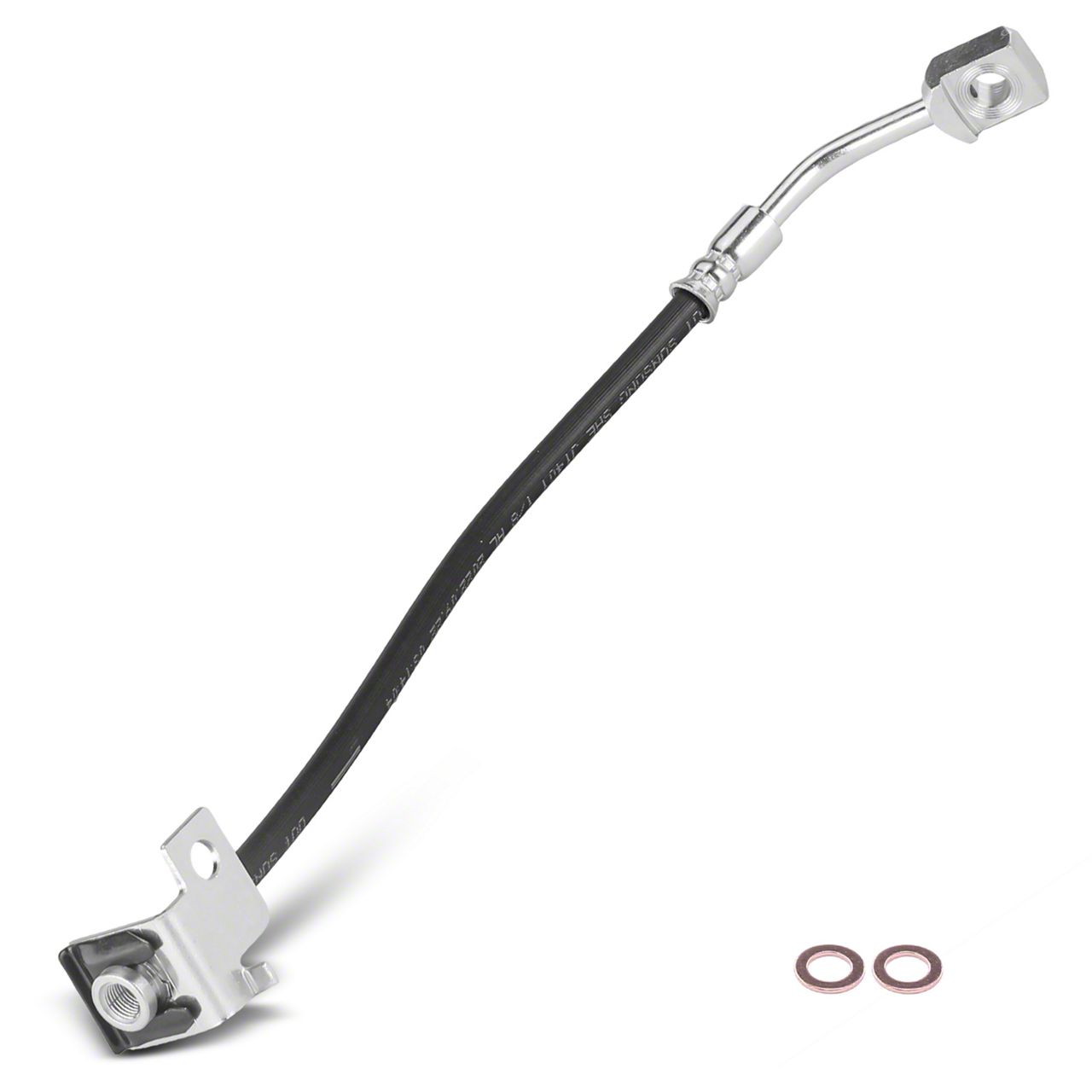 Premium Brake Component. The Brake Hydraulic Hose for the front driver or passenger side is engineered to replace the brake fluid conduit, ensuring reliable hydraulic pressure transfer from the master cylinder to the brake calipers. This hose is essential for maintaining consistent and uniform brake pedal feel, which is critical for safe and effective braking performance.