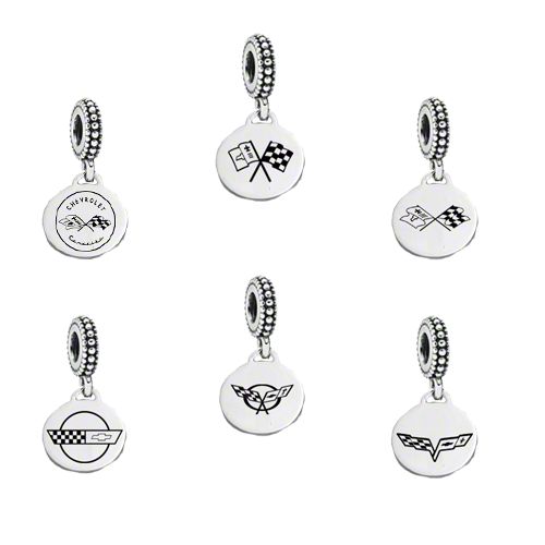 0This Corvette Pandora style dangle charm comes with your choice of C1 through C6 emblem on a tire-looking base. The charm base is large enough to go over the screw-type bracelets and fits Pandora, Chamilia, Biagi, Pugster, Troll and other bracelets. Sterling silver base/Stainless steel disc.
