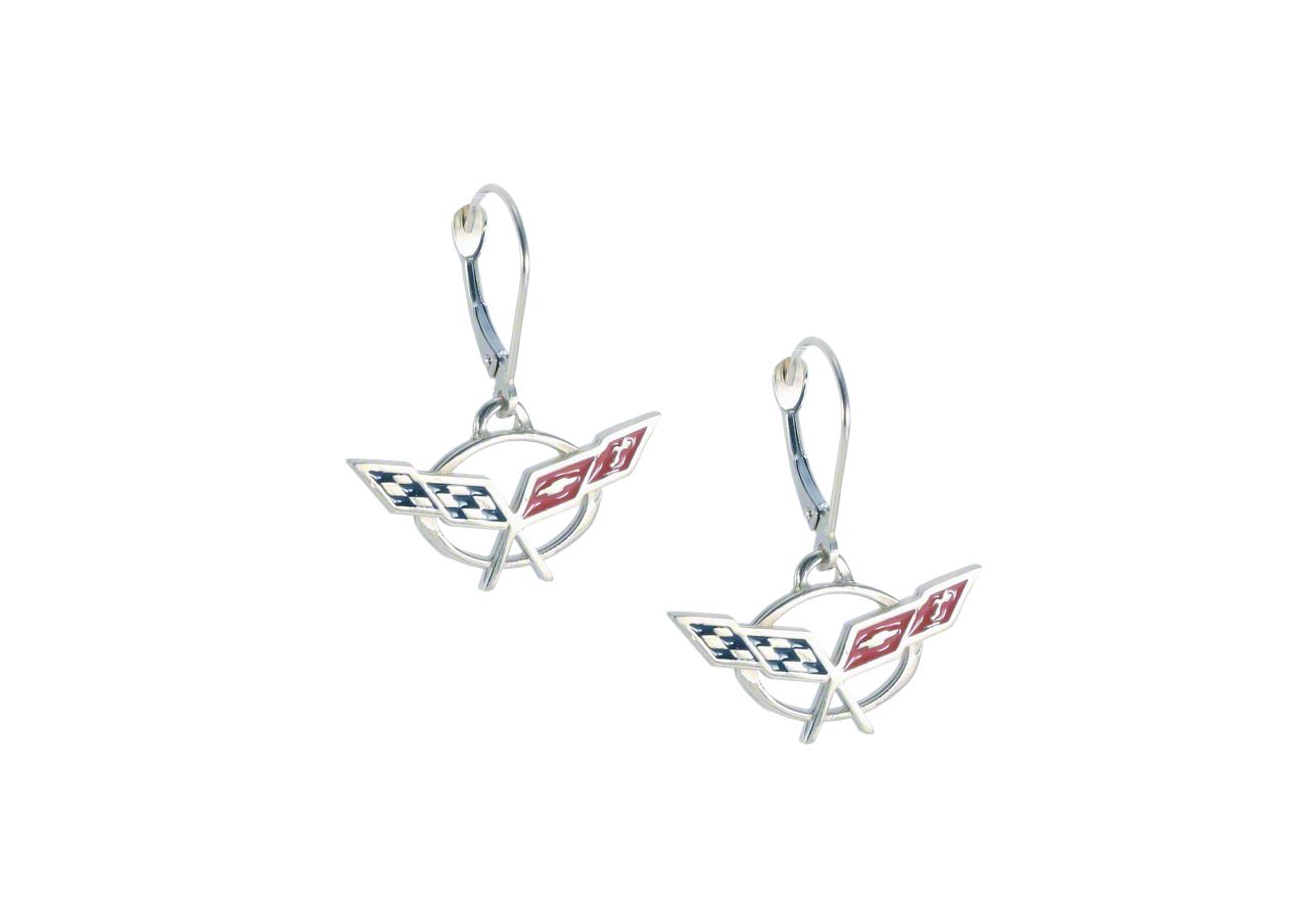 C5 Enameled Leverback Earrings; Sterling Silver