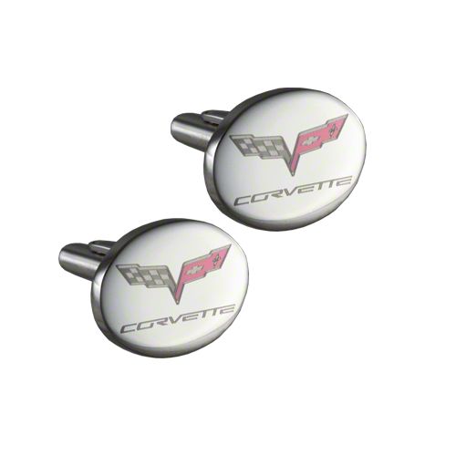 These C6 Corvette cufflinks have color marked emblem and are made of high polished stainless steel. The oval cufflinks measure 20mm x 15mm.