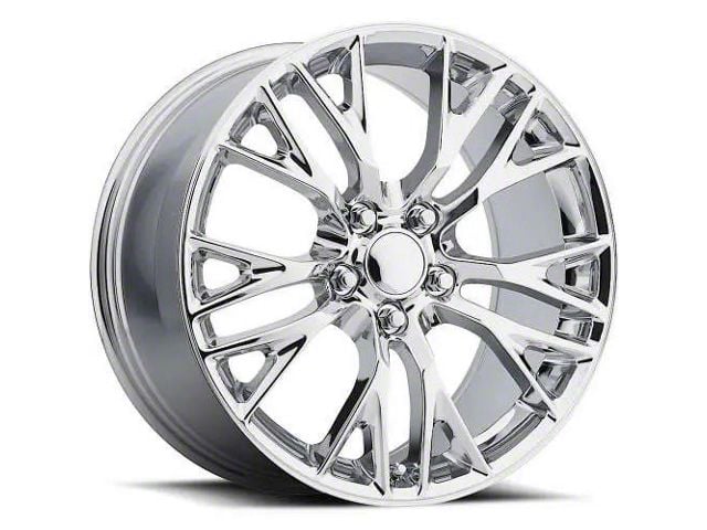 This 18x9.5 Store Brand C7 Z06 Replica Chrome Wheel; Front Only; 18x9.5 is completed in a high-quality chrome finish that will make everyone take notice. Using a 3-stage process involving copper, nickel and chrome, you get a sensational bright wheel that can withstand the rigors of daily driving.