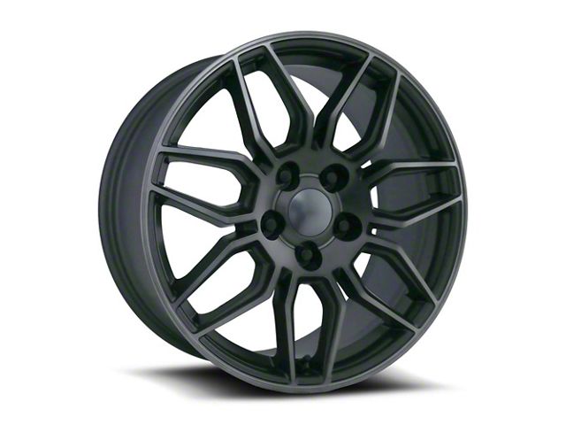 The 18x8.5 C8 ZO6 Replica Satin Titanium Grey Machine Face Wheel; Front Only; 18x8.5; 54mm Offset is completed in a high-quality titanium gray finish with steel machined accents, which is sure to turn heads. There is a durable clear coat for extra protection and enhanced appearance that can withstand the rigors of the road.