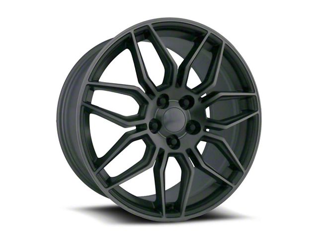 The 20x10 C8 ZO6 Replica Satin Titanium Grey Machine Face Wheel; Rear Only; 20x10; 79mm Offset is completed in a high-quality titanium gray finish with steel machined accents, which is sure to turn heads. There is a durable clear coat for extra protection and enhanced appearance that can withstand the rigors of the road.
