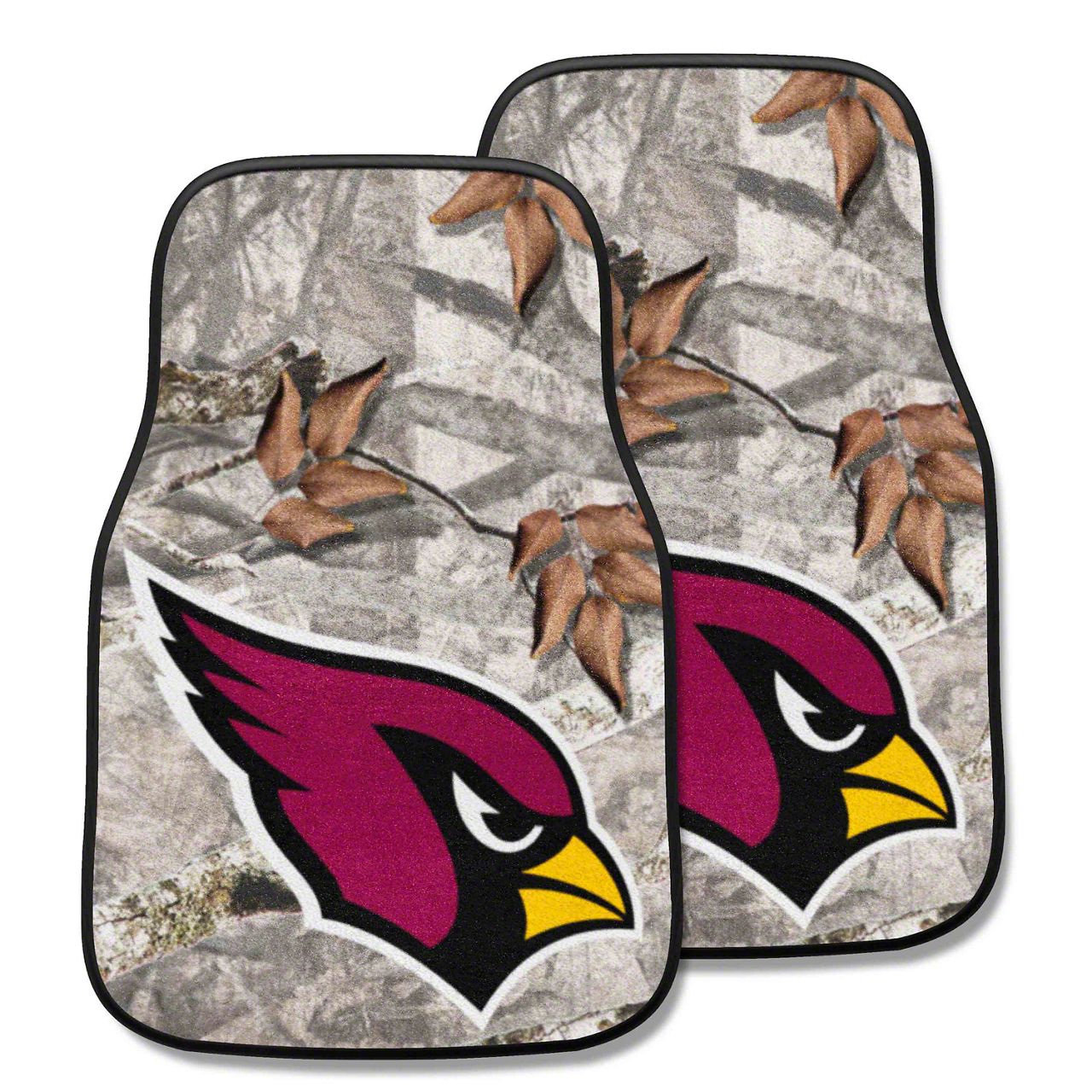 Carpet Front Floor Mats with Arizona Cardinals Logo; Camo (Universal; Some Adaptation May Be Required)
