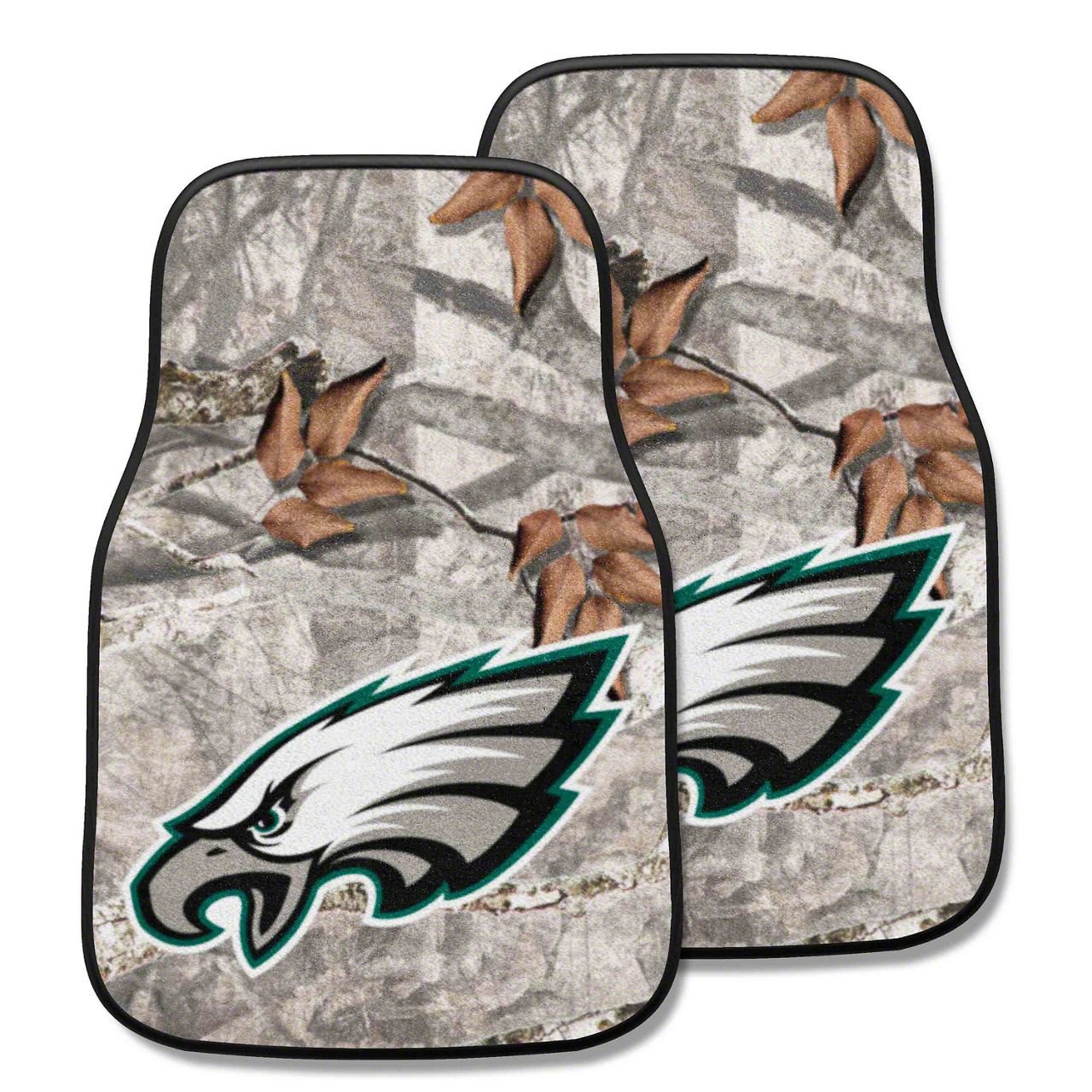 Carpet Front Floor Mats with Philadelphia Eagles Logo; Camo (Universal; Some Adaptation May Be Required)