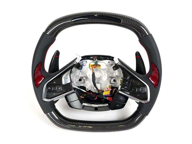 Genuine Carbon Fiber. Take control with style using the Custom Carbon Fiber Steering Wheel with LED Dash Display. Built following stock steering wheel specifications, this upgrade ensures seamless fitment in all 2020-2026 Chevrolet Corvette C8 models. Crafted from genuine carbon fiber, this steering wheel offers not just an improved aesthetic, but also superior durability and a lightweight feel.
