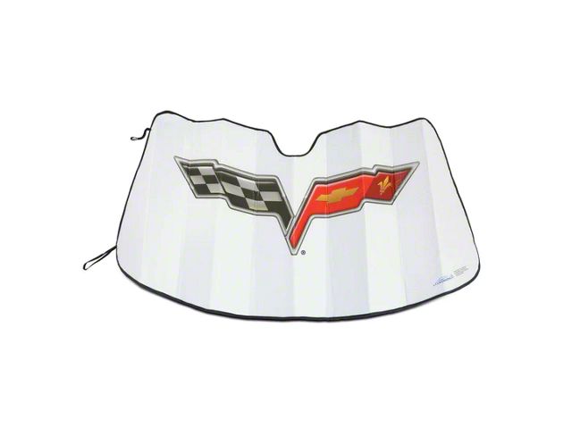 Application. The Custom Fit Sunshade with Flag Logo fits 2005-2013 Corvette C6 models.