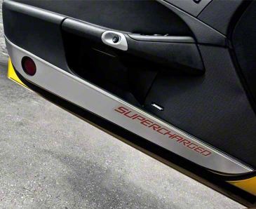 Premium Door-Edge Protection. These Door Guards with Supercharged Inlay; Brushed Black shield your Corvette C6’s door edges from chips and dings while adding a custom supercharged emblem for visual flair. The brushed-black ABS construction resists UV damage, maintaining a fresh look even after repeated exposure to the elements.