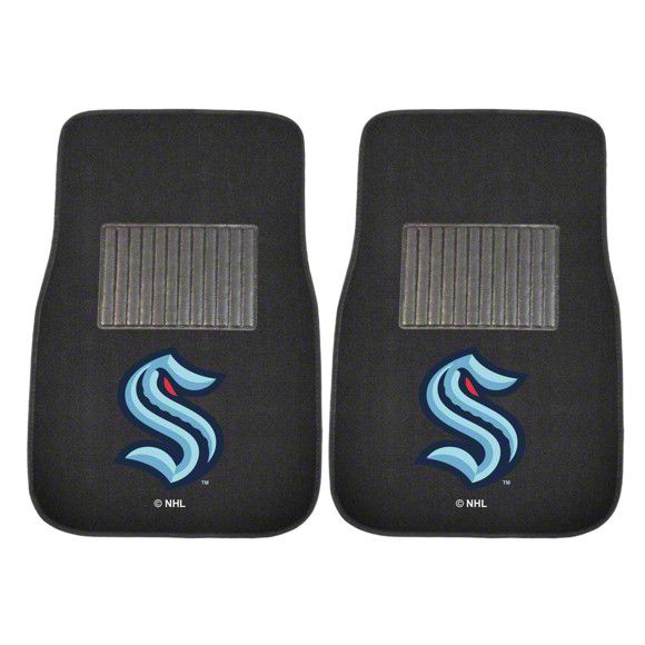 Show Your Team Spirit. The Embroidered Front Floor Mats with Seattle Kraken Logo add a touch of team pride to your vehicle's interior. Featuring the full team colors and logo, these mats are perfect for fans who want to showcase their support.