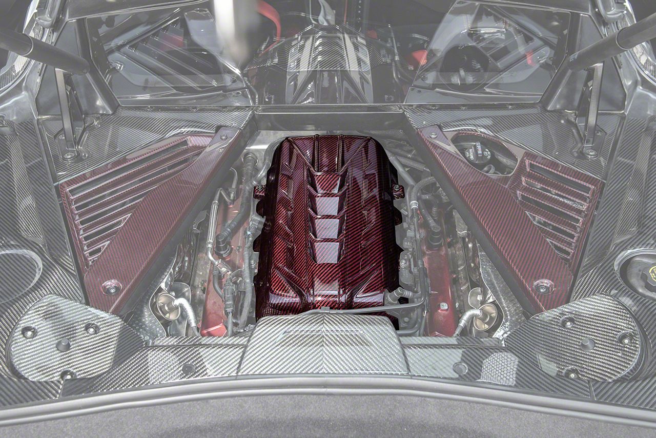 Show Off Your Engine with the Red Carbon Fiber Engine Cover. The Red Carbon Fiber Engine Cover is the perfect way to enhance the appearance of your Corvette C8 Coupe's engine bay. This stylish cover not only adds a bold, custom look but also protects vital engine components from dust and debris. Designed for Corvette owners who want to make their engine bay stand out, this cover is a simple yet impactful upgrade for your 2020-2026 Corvette C8 Coupe.