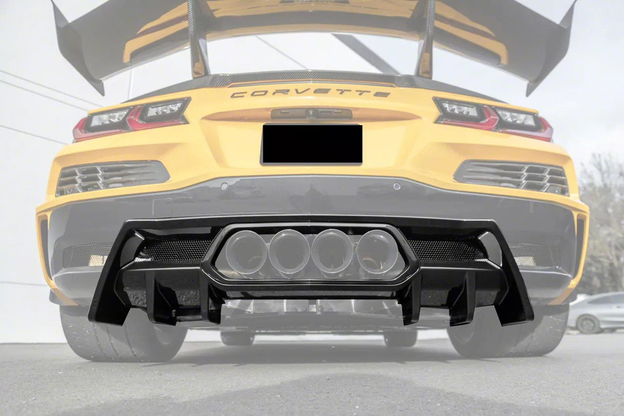 Application. This EOS Performance Package Rear Bumper Finned Diffuser fits 2023-2026 Chevrolet Corvette C8 Z06 models.