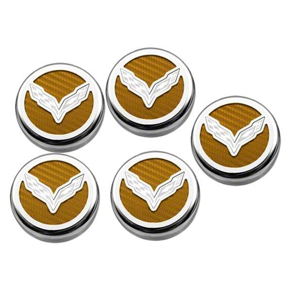 Flag Style Fluid Cap Covers; Orange Carbon Fiber (14-19 Corvette C7 w/ Manual Transmission, Excluding ZR1)Find parts that fit my vehicle